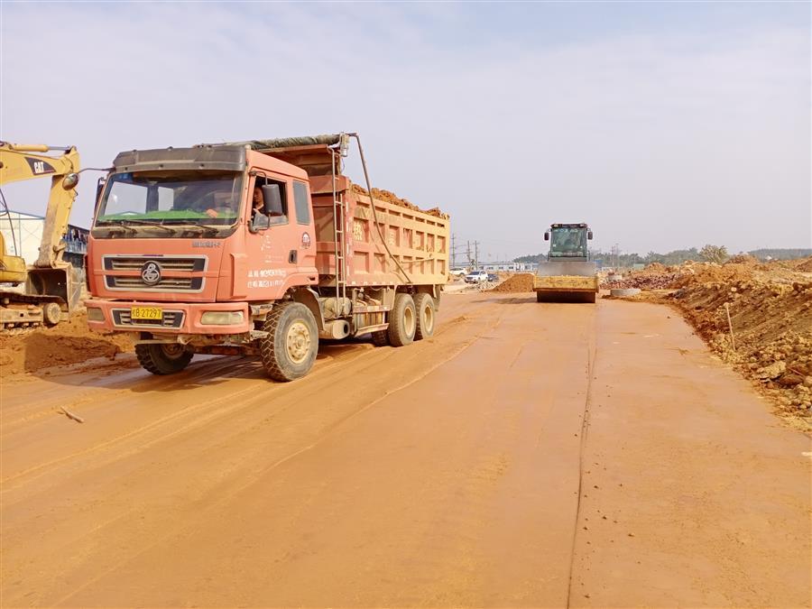 在白露村周邊支路路網(wǎng)工程-4標段(規(guī)劃路8)項目施工現(xiàn)場,挖掘機、土方運輸車、壓路機等工程機械在工地上連續(xù)運轉(zhuǎn)。工作人員加班加點作業(yè),充分利用施工黃金季節(jié),全面推進項目建設(shè)。