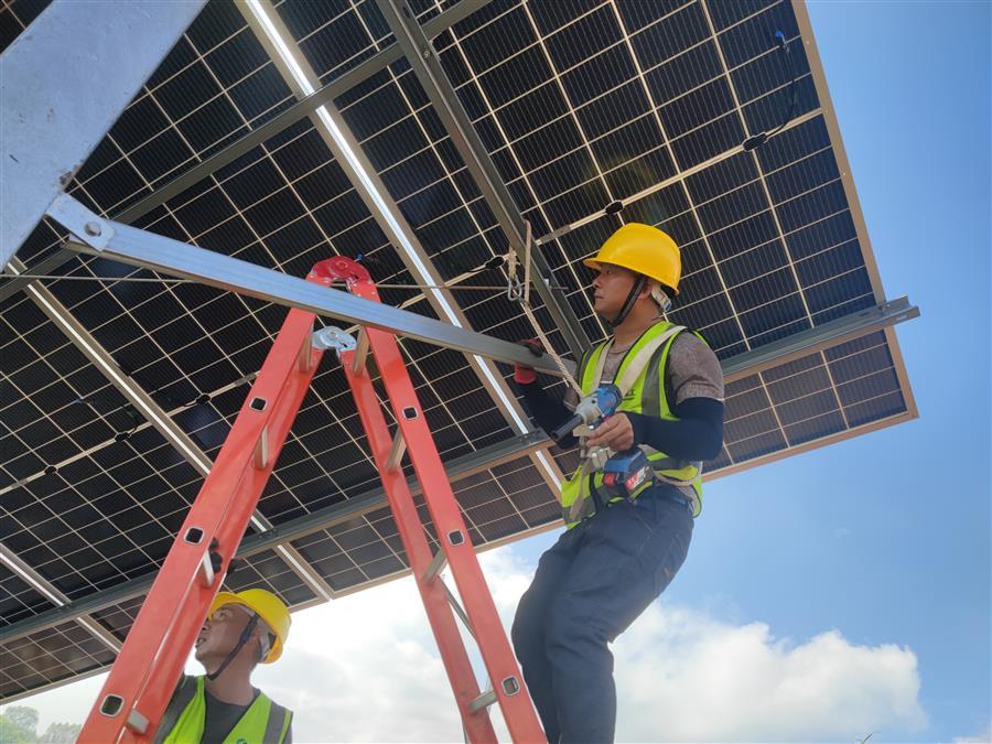 天氣炎熱,項目部及時調(diào)整施工方案,精心組織,科學(xué)調(diào)度,確保大家的身體健康和工程建設(shè)進度兩不誤。截至目前,該項目已完成樁基澆筑工作的30.13%,支架和光伏板安裝工作的18%。