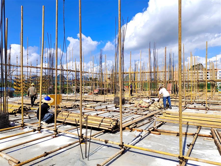 截至目前,該項(xiàng)目已完成產(chǎn)值1500萬(wàn)元,其中1#塔樓已完成主體結(jié)構(gòu)施工,三層梁板已完成澆筑,完成建筑面積4648平方米;2#塔樓已完成基槽驗(yàn)收。