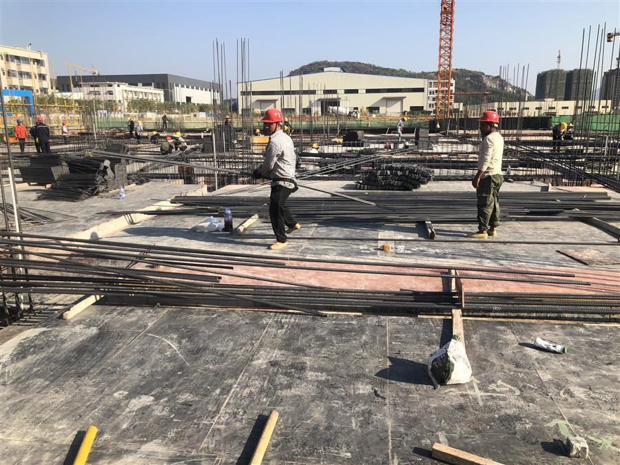該項(xiàng)目是柳州市重點(diǎn)項(xiàng)目,總建筑面積為8.7萬(wàn)平方米。目前靜壓樁施工已全部完成;1號(hào)樓E區(qū)頂板完成;H區(qū)底板完成;F區(qū)與G區(qū)底板防水保護(hù)層完成;2號(hào)樓A區(qū)二層模板安裝完成,D區(qū)負(fù)一層滿(mǎn)堂架搭設(shè)完成。