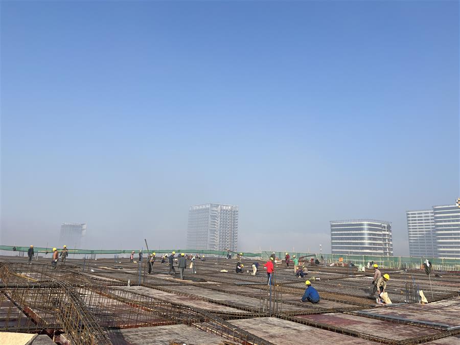 北部生態(tài)新區(qū)智能機器人標準廠房(二期)1#、2#、5#、7#標準廠房、13#、14#甲類庫房工程項目部統(tǒng)籌調(diào)配資源,科學組織施工,認真抓好項目建設。該項目總建筑面積10.8萬平方米,目前1#標準廠房主體驗收完成,2#標準廠房樁基礎50%,5#標準廠房1-10軸底板墊層完成,11-27軸主體結構封頂。