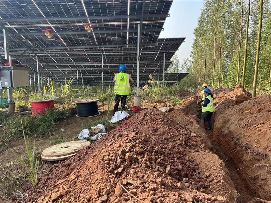 節(jié)后復(fù)工復(fù)產(chǎn)以來,項(xiàng)目接地網(wǎng)開挖敷設(shè)完成1235米,低壓電纜敷設(shè)完成1285米,光伏專用電纜敷設(shè)完成14760米,圍欄安裝1030米。