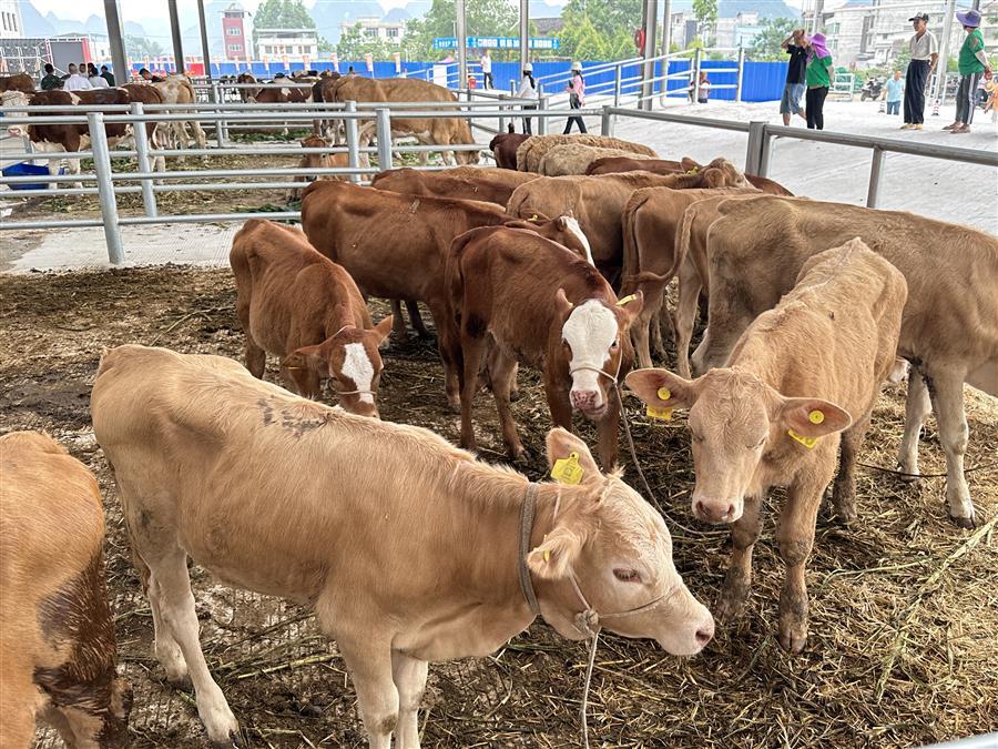 活動(dòng)現(xiàn)場(chǎng),熱鬧非凡,大家參觀了農(nóng)特項(xiàng)目園區(qū)及桂中牛行,并對(duì)園區(qū)今后的發(fā)展提出了意見(jiàn)和建議。桂中牛行作為農(nóng)特項(xiàng)目園區(qū)內(nèi)的首個(gè)主力商家,主營(yíng)活牛羊交易,副營(yíng)馬、驢、騾子等草食動(dòng)物交易。試業(yè)當(dāng)天,牛群“哞哞”聲此起彼伏,一頭頭體格健壯的牛兒一字排開(kāi),人們?nèi)宄扇旱貒墼谝黄穑屑?xì)挑選著心儀的牛兒。一旁的牛崽交易市場(chǎng)內(nèi),買家更是爭(zhēng)相搶購(gòu)體態(tài)良好的牛崽,市場(chǎng)交易紅火。