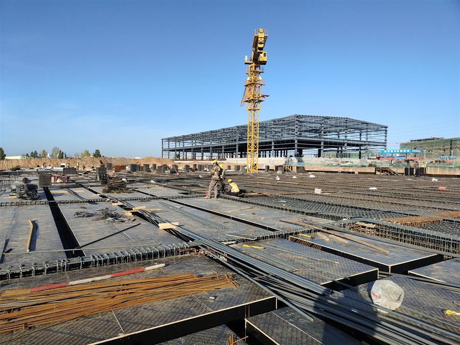 合肥公交集團(tuán)廬陽停保場(chǎng)復(fù)建EPC工程,國慶期間有100多名工人加班作業(yè),目前項(xiàng)目正在進(jìn)行停車樓一區(qū)三層頂梁板澆筑。