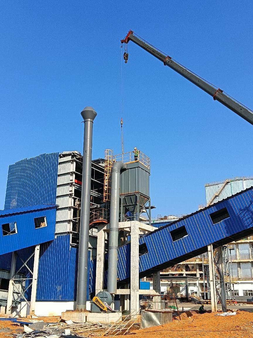融安縣生活垃圾焚燒發(fā)電項(xiàng)目工程總承包項(xiàng)目,工人正在進(jìn)行汽機(jī)間屋面鋼筋網(wǎng)綁扎。