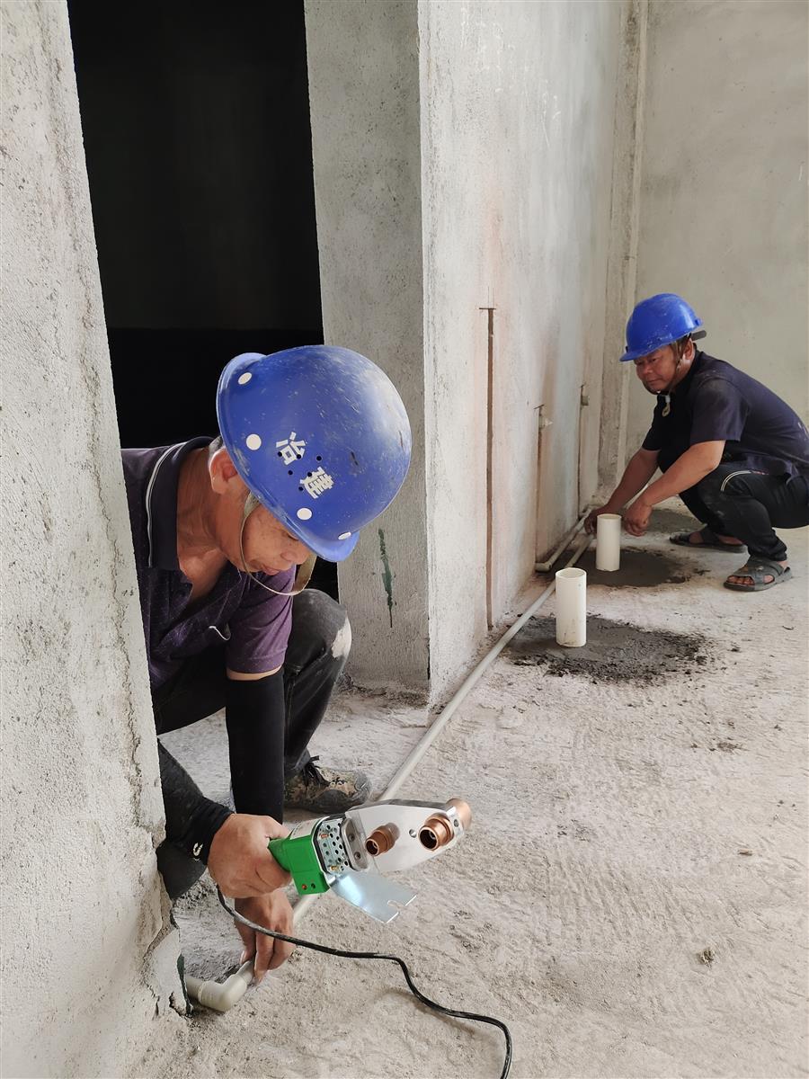 廣西思高香料有限公司食品香精香料及煙用添加劑生產(chǎn)基地項(xiàng)目辦公綜合樓、1#-3#廠房及門衛(wèi)室項(xiàng)目,工人在安裝管道。