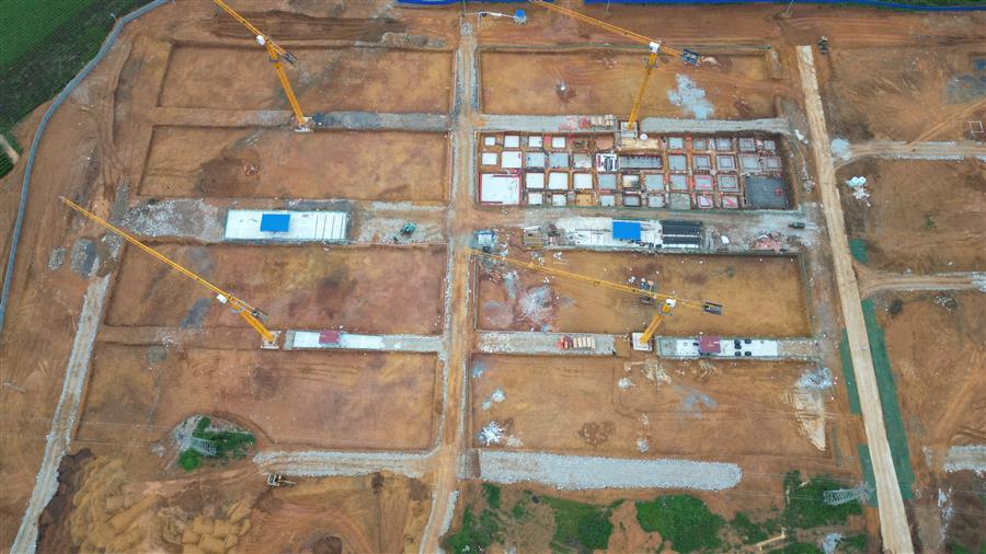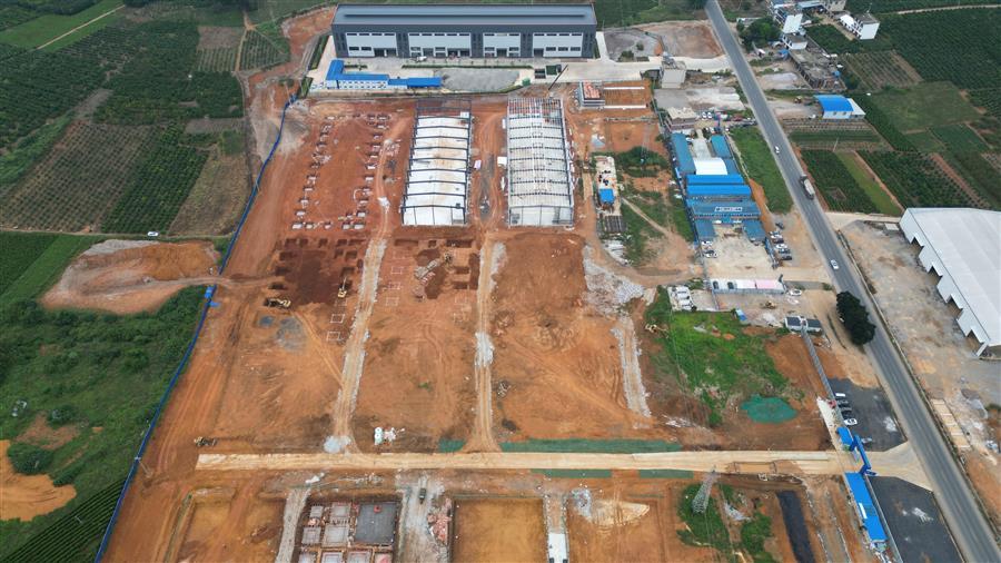 目前,該項目設(shè)備房消防水池外架搭設(shè)、模板安裝已完成,4號廠房側(cè)面檁條安裝完成,5號廠房屋面檁條安裝完成50%,6號樓基礎(chǔ)承臺已完成,4號樓地基處理注漿完成70%等。