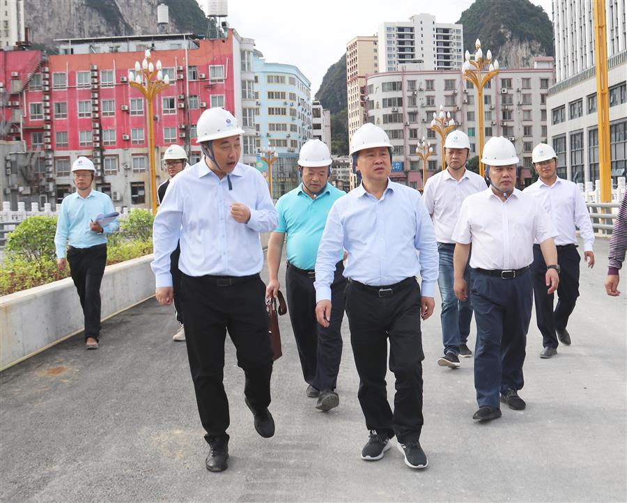 10月20日,河池市委書(shū)記秦春成到冶建公司桂金分公司承建的河池市龍江六橋(輝樂(lè)橋)調(diào)研指導(dǎo)工作。河池市金城江區(qū)委書(shū)記潘廣軍,業(yè)主單位河池市城鄉(xiāng)建設(shè)投資集團(tuán)有限公司黨委書(shū)記、董事長(zhǎng)尚斌參加調(diào)研。