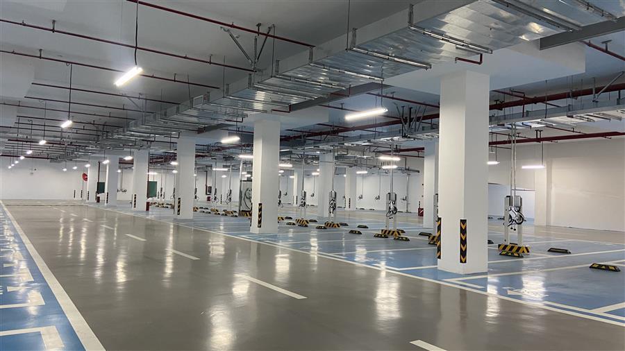 項(xiàng)目總建筑面積約2.7萬平方米,為一座兩層局部覆土式地上停車庫,建設(shè)內(nèi)容包含停車場、地面廣場鋪裝及綠化、給排水、電氣、消防等附屬工程。項(xiàng)目建成將新增600個機(jī)動車位,其中負(fù)二層510個機(jī)動車位,負(fù)一層78個有充電樁的新能源停車位,屋面12個無障礙車位;另外,停車庫屋面設(shè)有283個非機(jī)動車位。綠地率為60%。停車場內(nèi)部空間寬敞明亮,外觀看像是地下停車庫,但實(shí)際上由于該區(qū)域地勢較低,為合理規(guī)劃,特意將停車庫設(shè)計(jì)為地上兩層局部覆土式停車庫,即在停車庫上方回填泥土,在泥土上種植綠化樹木,將車庫上方裝點(diǎn)成一個小公園。項(xiàng)目交付運(yùn)營,有效緩解三門江森林公園周邊“停車難”問題。