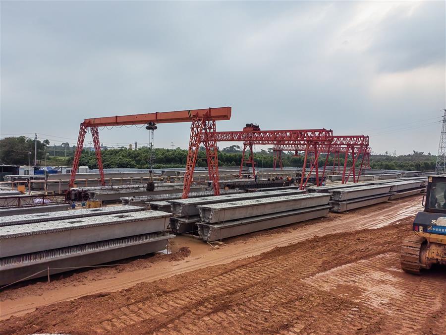 在施工現(xiàn)場,20多臺大型設(shè)備在不同時段連續(xù)配合作業(yè),運(yùn)輸車輛有序進(jìn)行運(yùn)土填筑路基、材料進(jìn)出場,100多名項目管理人員及工人分為預(yù)制梁場、樁基施工、橋梁下部結(jié)構(gòu)等班組全線鋪開,在各個作業(yè)點上有條不紊地開展施工作業(yè)。