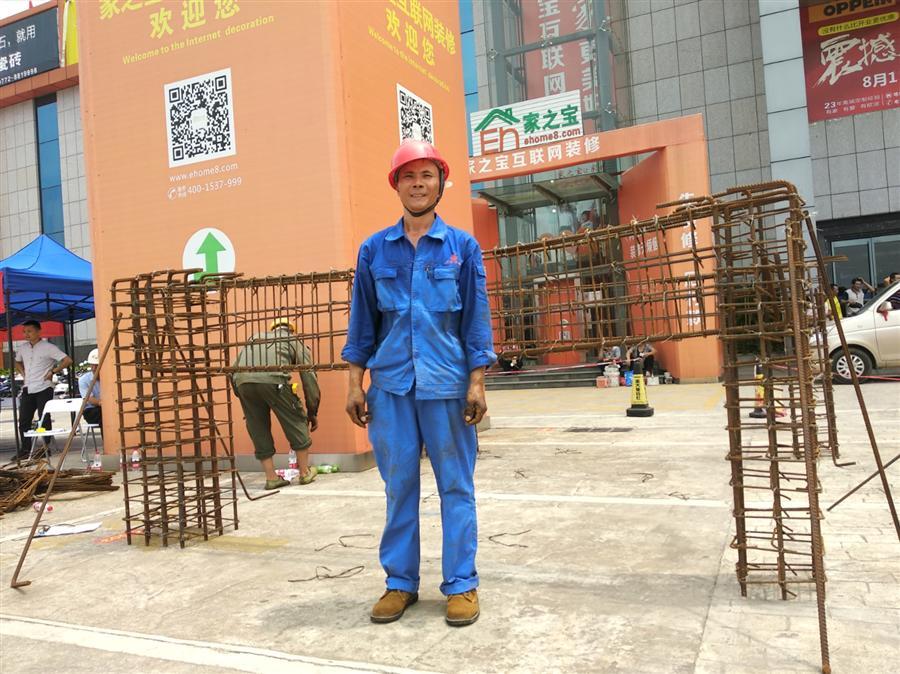 當(dāng)天室外最高溫度達(dá)35℃,陽(yáng)光曝曬,路面上飛揚(yáng)的塵土清晰可見(jiàn),參賽的農(nóng)民工選手們頭頂烈日,一絲不茍地完成比賽操作,較好地體現(xiàn)了他們的敬業(yè)精神與良好技能。